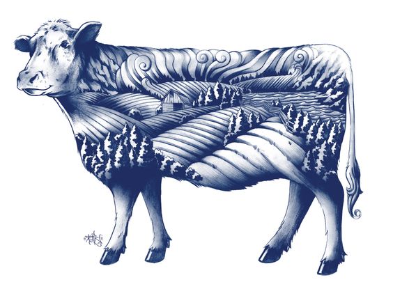 插畫采用刀刻手法創(chuàng)意,生動把農(nóng)場的生態(tài)環(huán)境融入雞的形態(tài)當中,生態(tài)即是雞,雞即是生態(tài),合二為一。