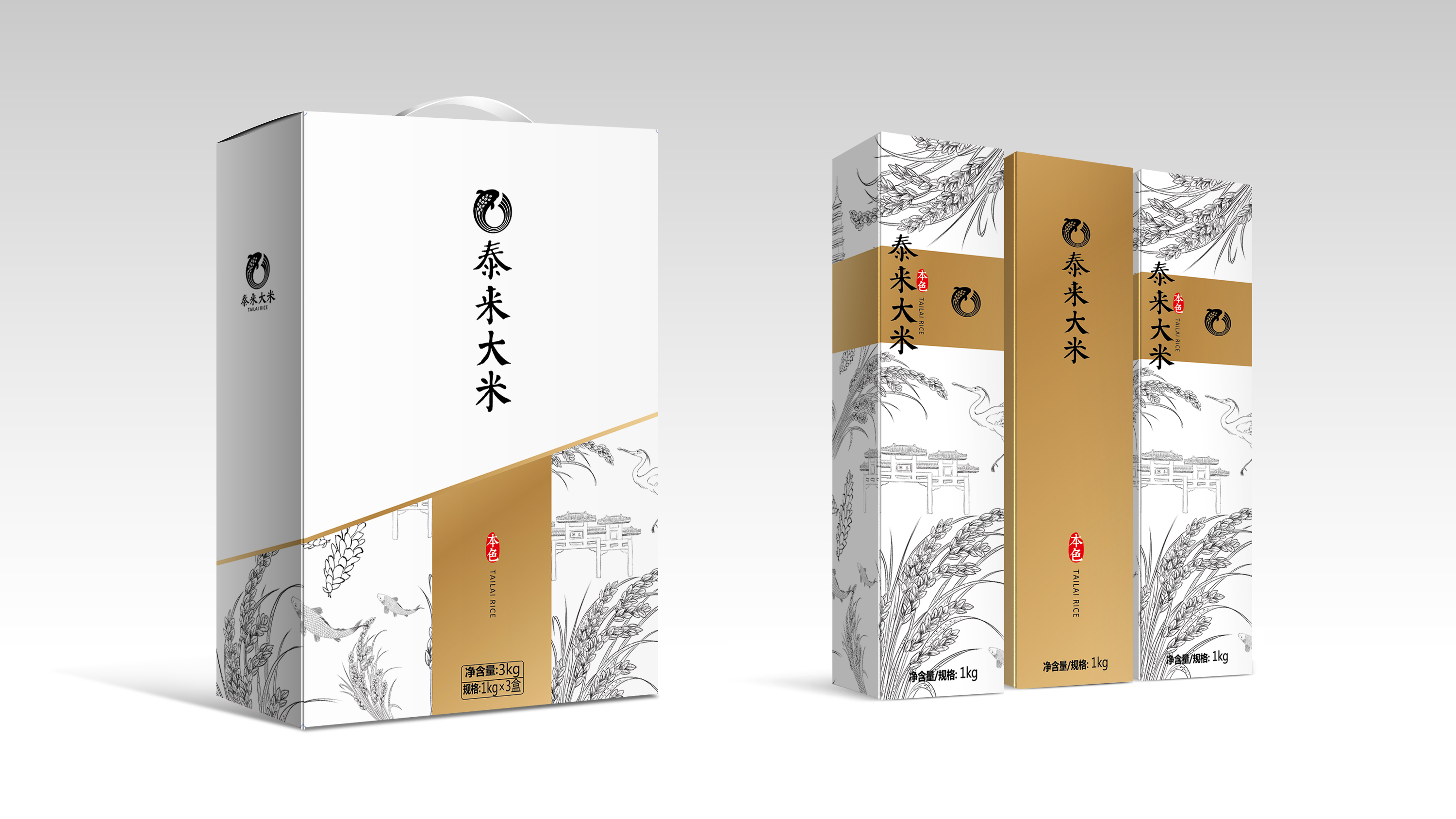以“泰來(lái)大米”四個(gè)字為主設(shè)計(jì),設(shè)計(jì)袋裝、盒裝、精品禮品裝幾個(gè)系列,但風(fēng)格要統(tǒng)一。