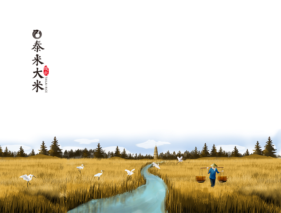 西林設(shè)計(jì)插畫(huà)師從暖秋的意象出發(fā),畫(huà)出溫暖的泰來(lái),且稻田中的幾只白琵鷺,更突顯泰來(lái)的寧?kù)o祥和。