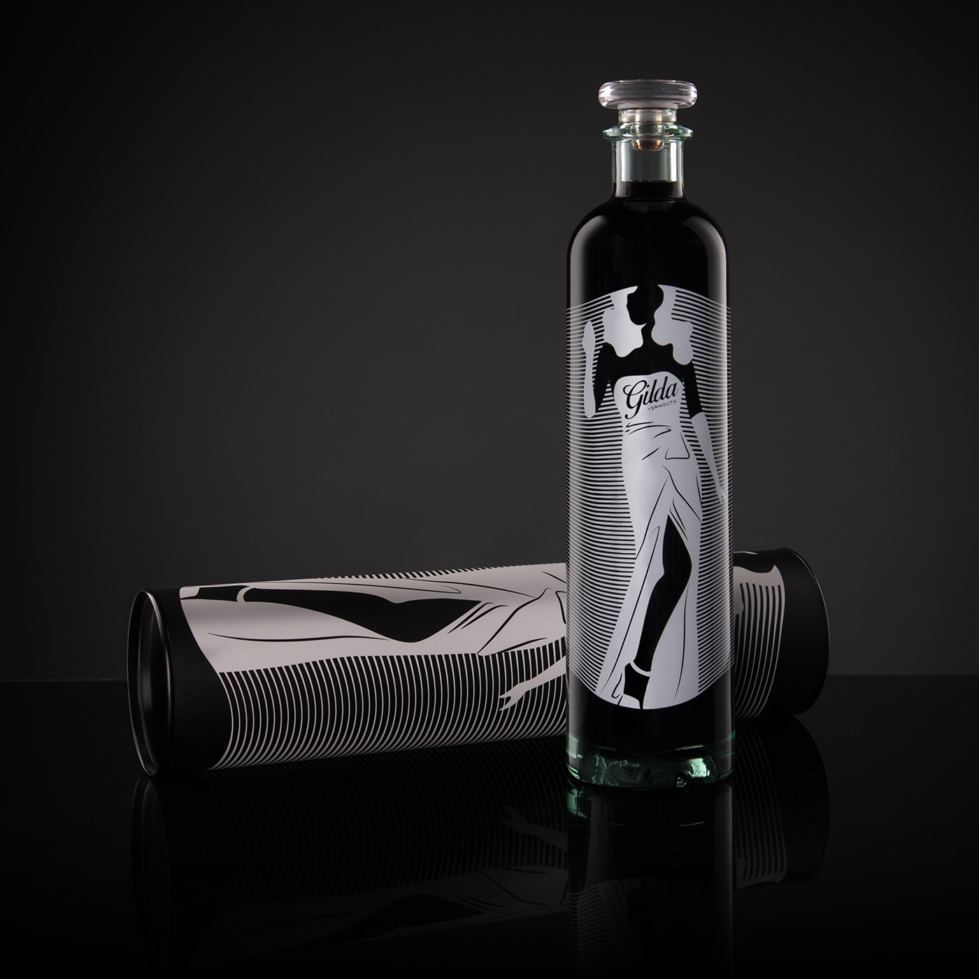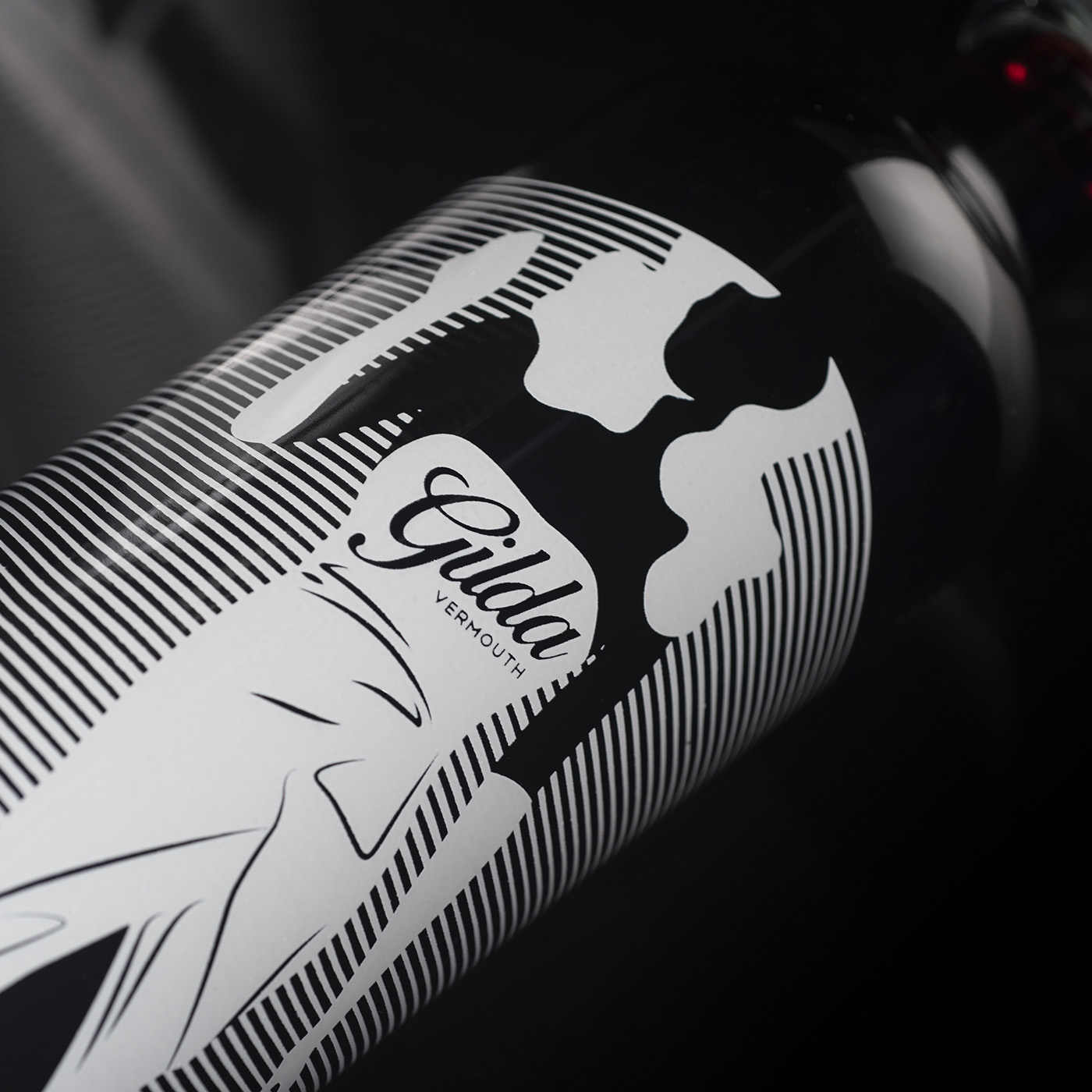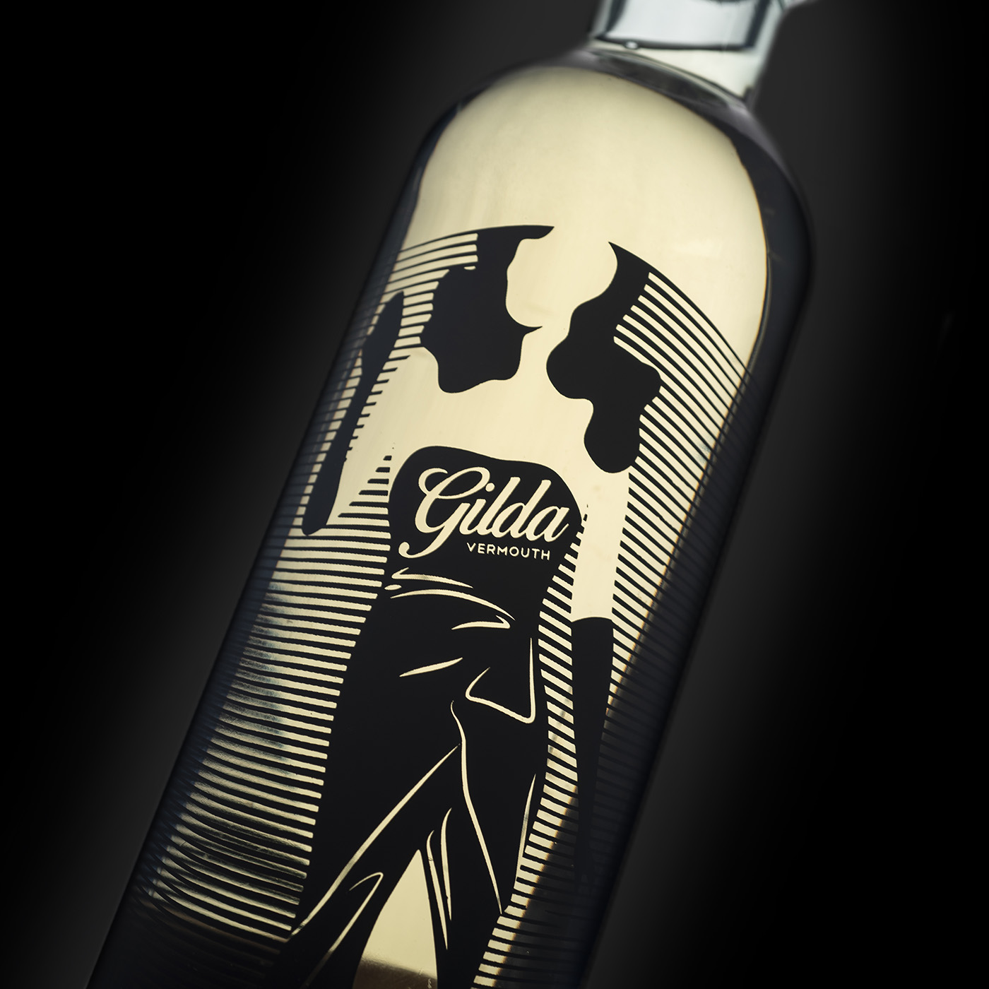 吉爾達(dá)是來自 Bodega Latarce 的新苦艾酒。她以麗塔海華絲主演的電影命名。設(shè)計靈感來自電影中主角的著名舞蹈,該舞蹈因誹謗而被許多國家禁止。為此,我們選擇了一個風(fēng)格化的瓶子,并絲網(wǎng)印刷了輪廓以及具有“莫爾”效果的線條,并賦予整體活力,因為當(dāng)瓶子移動時,人物似乎也在移動??喟朴邪咨姹荆O(shè)計相同,但采用黑色絲網(wǎng)印刷。為瓶身加冕,vinolok 瓶蓋與刻字一起使這款瓶身成為一款原創(chuàng)而優(yōu)雅的套裝。