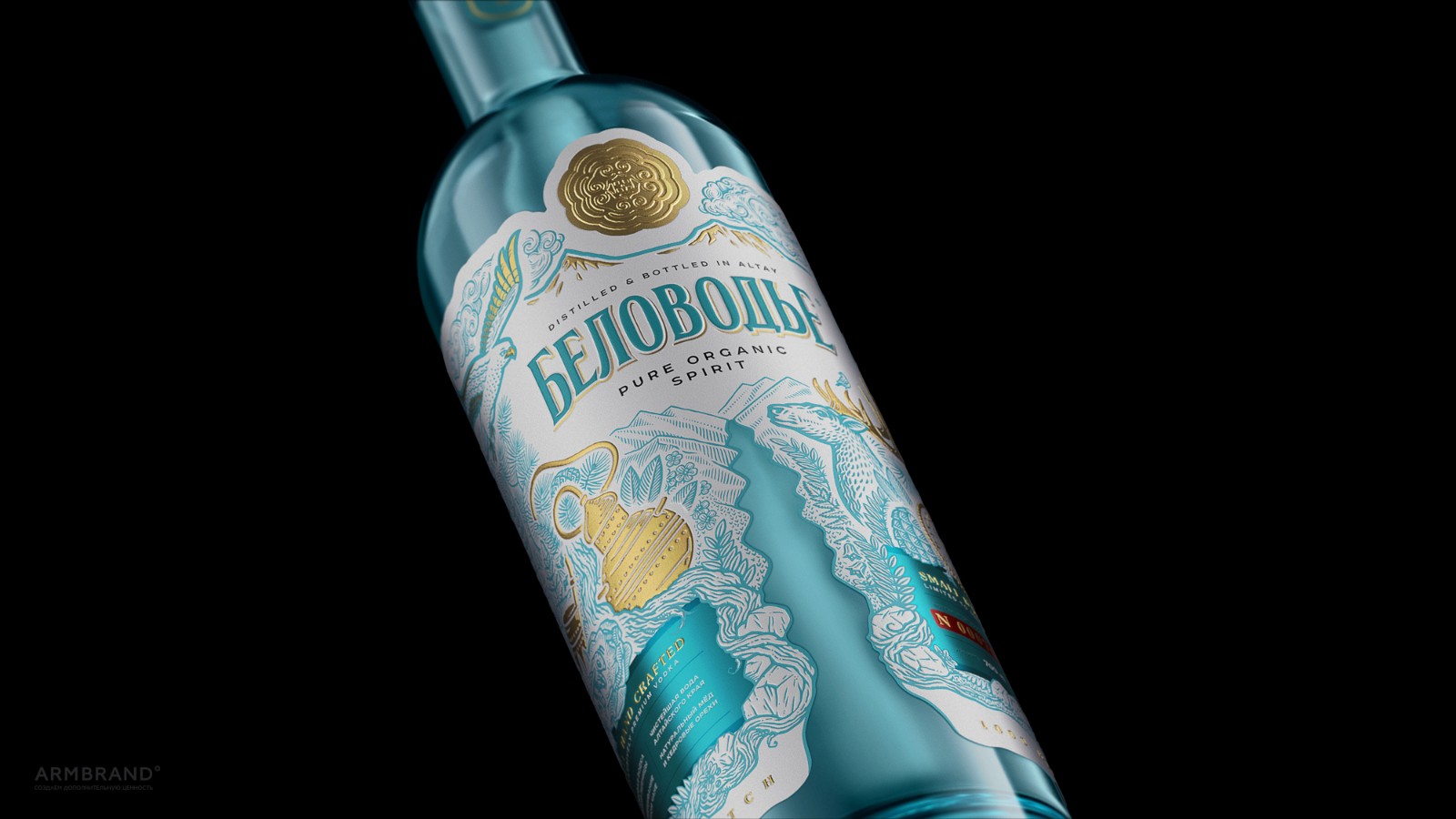 對(duì)于小批量的超優(yōu)質(zhì)單一麥芽伏特加“Belovodye”,ARMBRAND 工作室創(chuàng)作的設(shè)計(jì)靈感源自對(duì)阿爾泰的真摯熱愛(ài)。