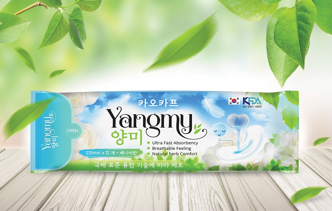 Yangmy衛(wèi)生巾的包裝,由BZC專門設計。市場,靈感來自天空的淡藍色和柔和的自然形象,給消費者帶來舒適感,完全符合品牌精神。