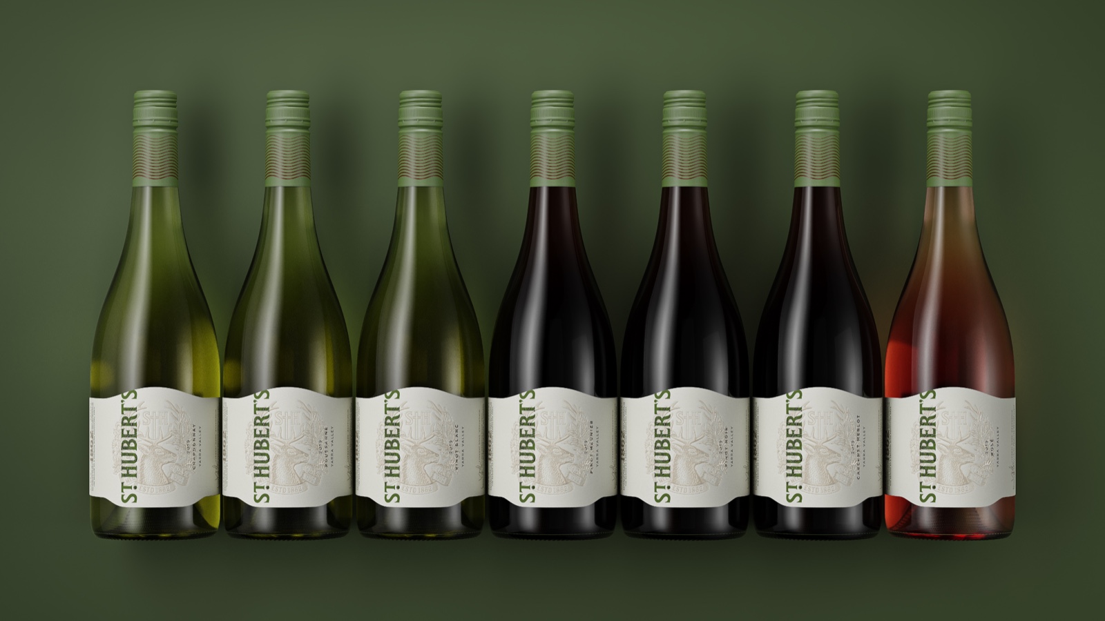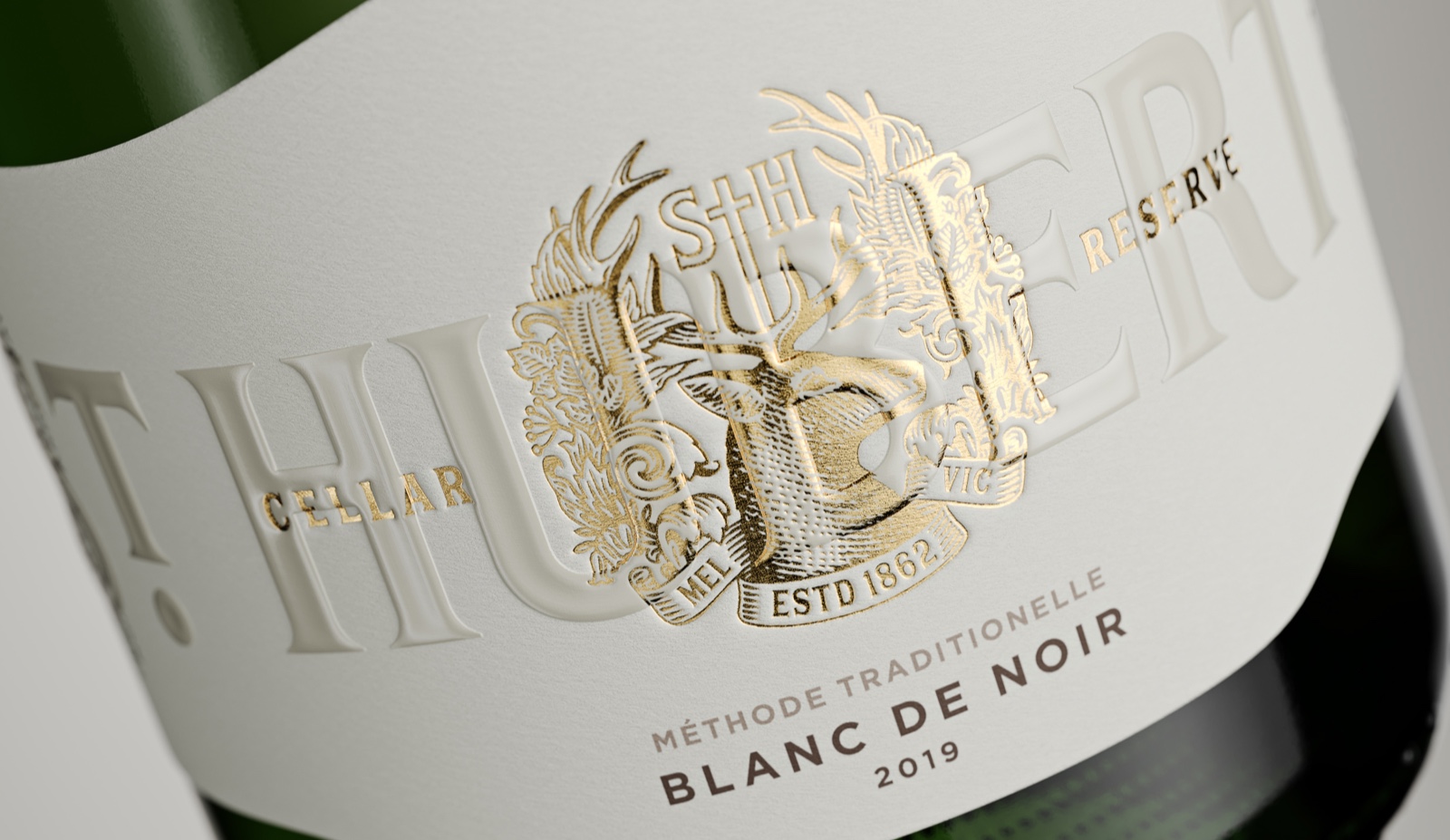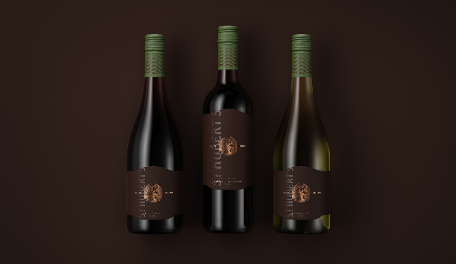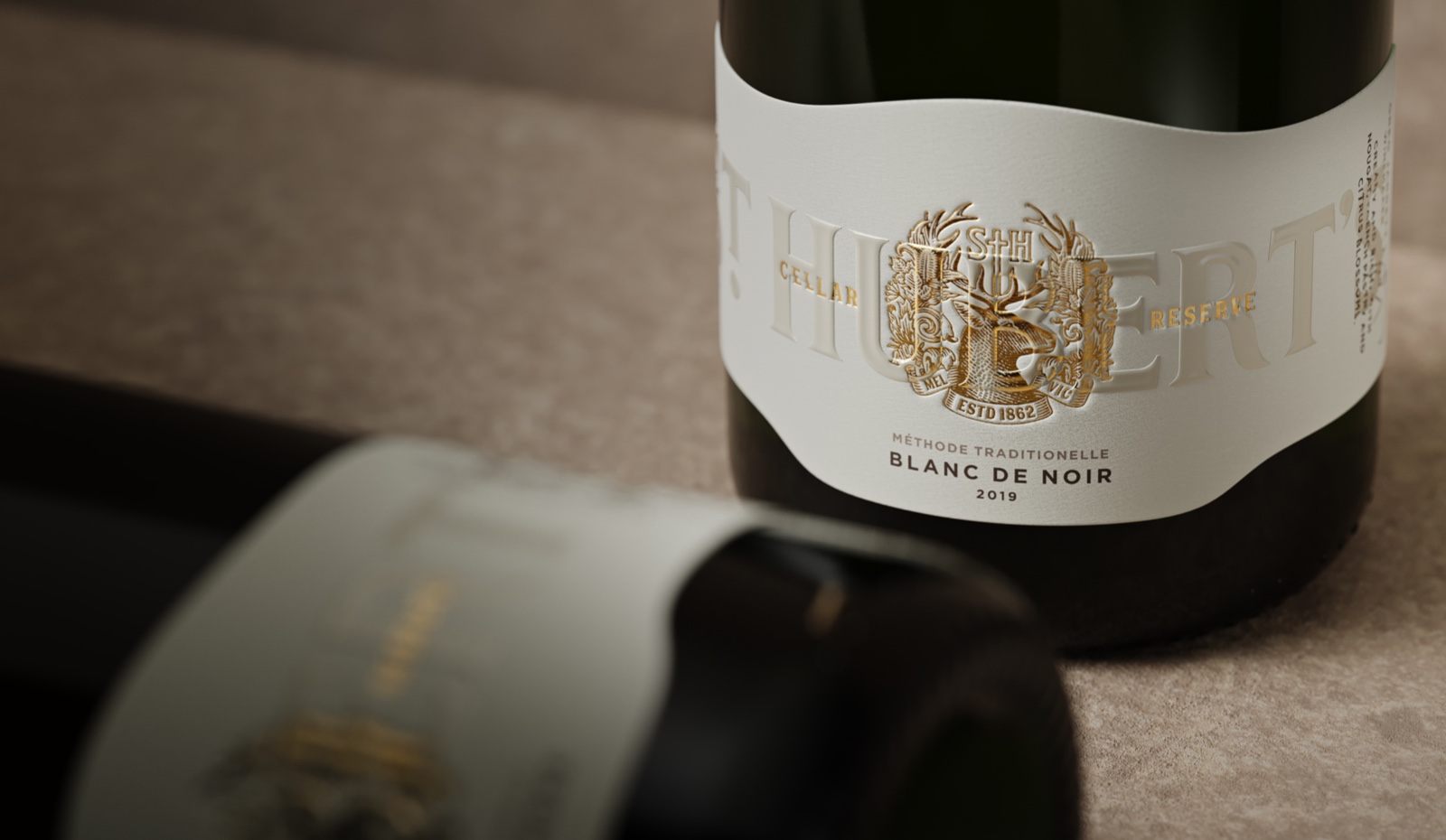 “該標(biāo)簽的靈感來源于新酒窖門的建筑線條,有機(jī)地矗立在葡萄園景觀之上。為了讓它展望未來,新的酒冠被郁郁蔥蔥的本地動(dòng)植物所包圍。一個(gè)完整的花押字在牡鹿頭上方同時(shí)作為十字架,參考了圣休伯特的《狩獵》,這是一個(gè)接近釀酒廠創(chuàng)始人休伯特·德·C的故事阿斯特拉。Boldinc創(chuàng)意總監(jiān)史蒂夫·史密斯(SteveSmith)解釋道:“這個(gè)文字標(biāo)記的靈感來自于圣休伯特(St Hubert)葡萄酒原始標(biāo)簽的維多利亞式排版。”。