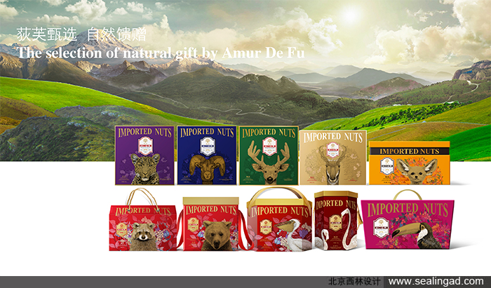 通過堅(jiān)果與卡通動植物場景結(jié)合,給包裝創(chuàng)意營造生態(tài)自然輕松感