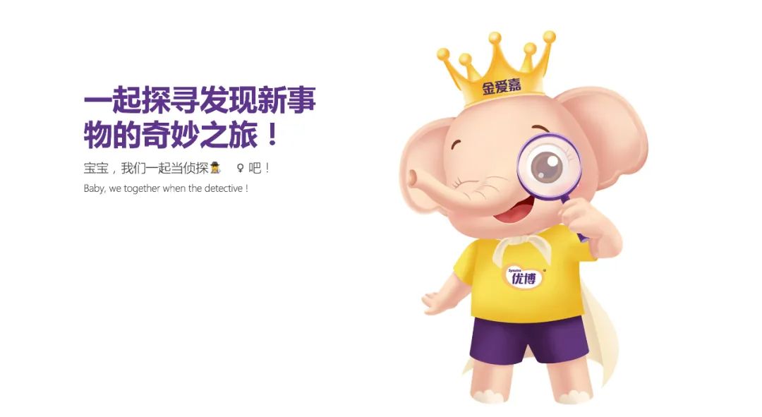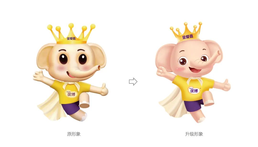 優(yōu)博22年以來,“優(yōu)博紫”的色彩早已深入到每一位寶媽們的心中,也是優(yōu)博的優(yōu)質(zhì)的品牌視覺資產(chǎn),另外還有一個重要的角色,就是優(yōu)博多年以來一直用小象做為與消費者溝通的卡通IP形象。優(yōu)博金愛嘉之前還專門設(shè)計了金愛嘉小象,值得一提的是西林設(shè)計在審查原IP形象后,做了許多細(xì)節(jié)的優(yōu)化提升。