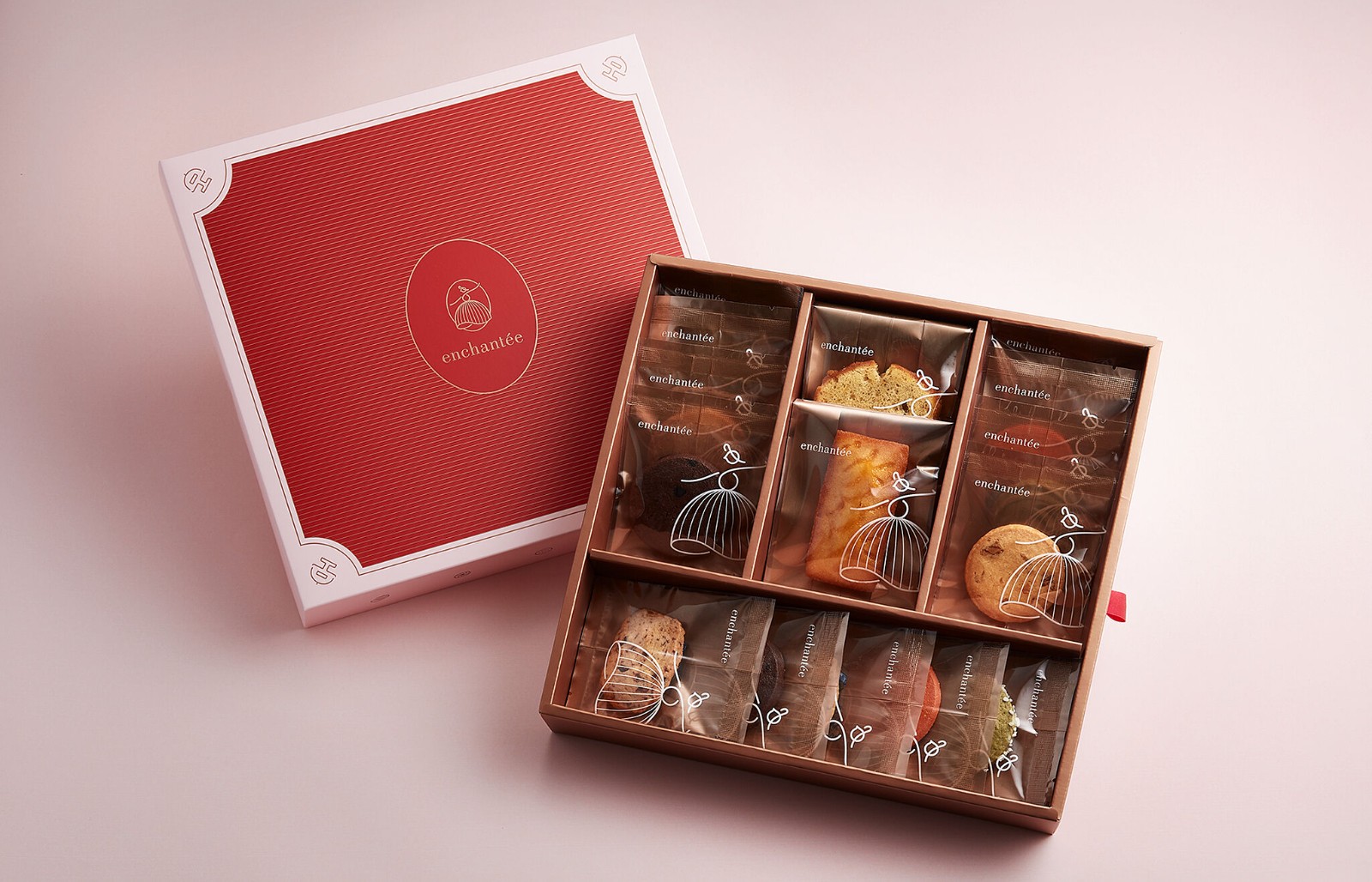 Enchantée是一個(gè)新的手工法國(guó)甜點(diǎn)品牌,面向婚禮禮盒市場(chǎng)。明亮的色彩和舞女的標(biāo)志表達(dá)了快樂和優(yōu)雅的品牌精神。這位戴著法式帽子的女士正在為即將到來的婚禮和甜點(diǎn)的美味而跳舞。她的短裙混合了馬德蘭的形狀。所有傳單和包裝都使用相同的配色方案和裝飾框架。無論何時(shí)在線瀏覽網(wǎng)站或收到有形印刷品和盒子,都能感受到一致的柔軟和優(yōu)雅。
