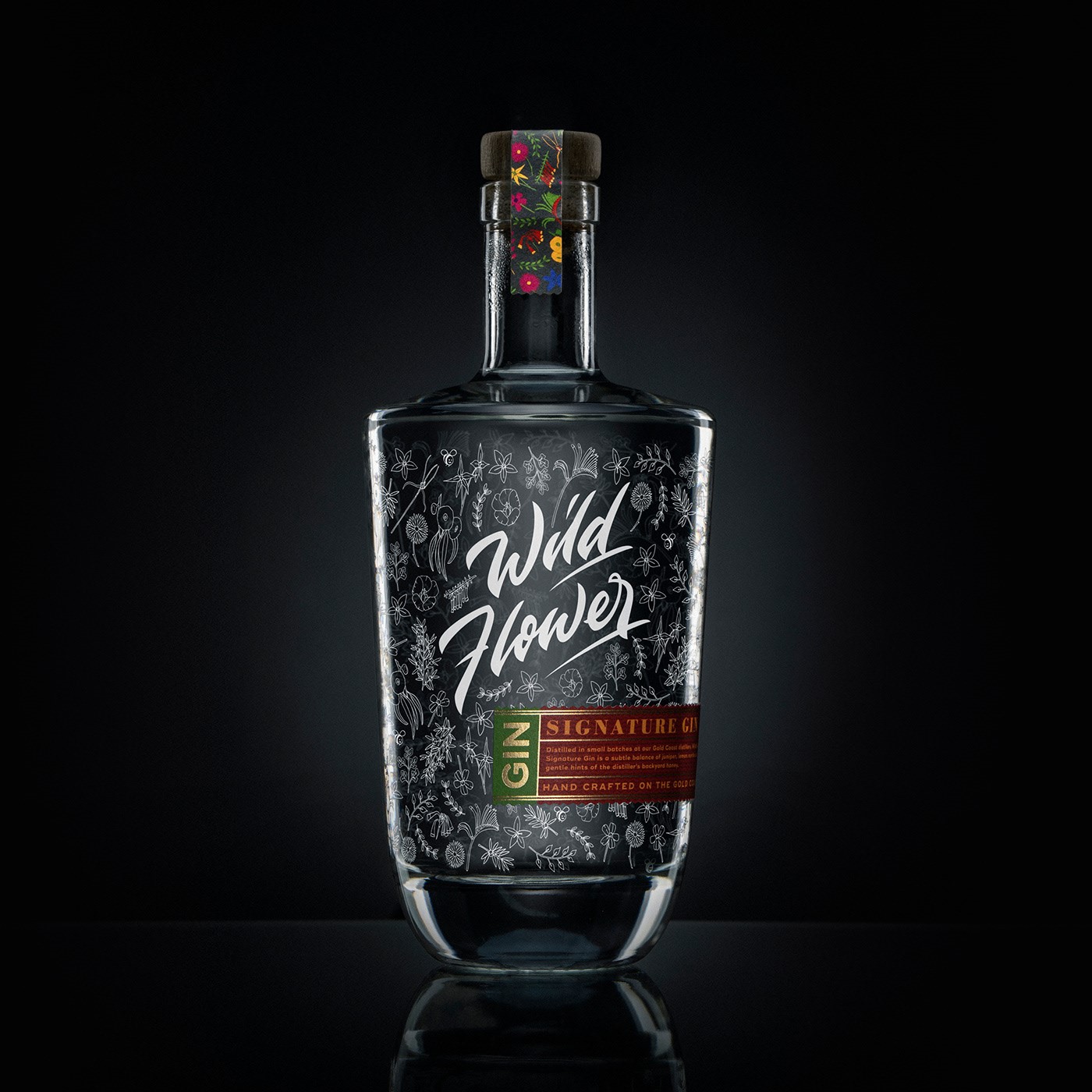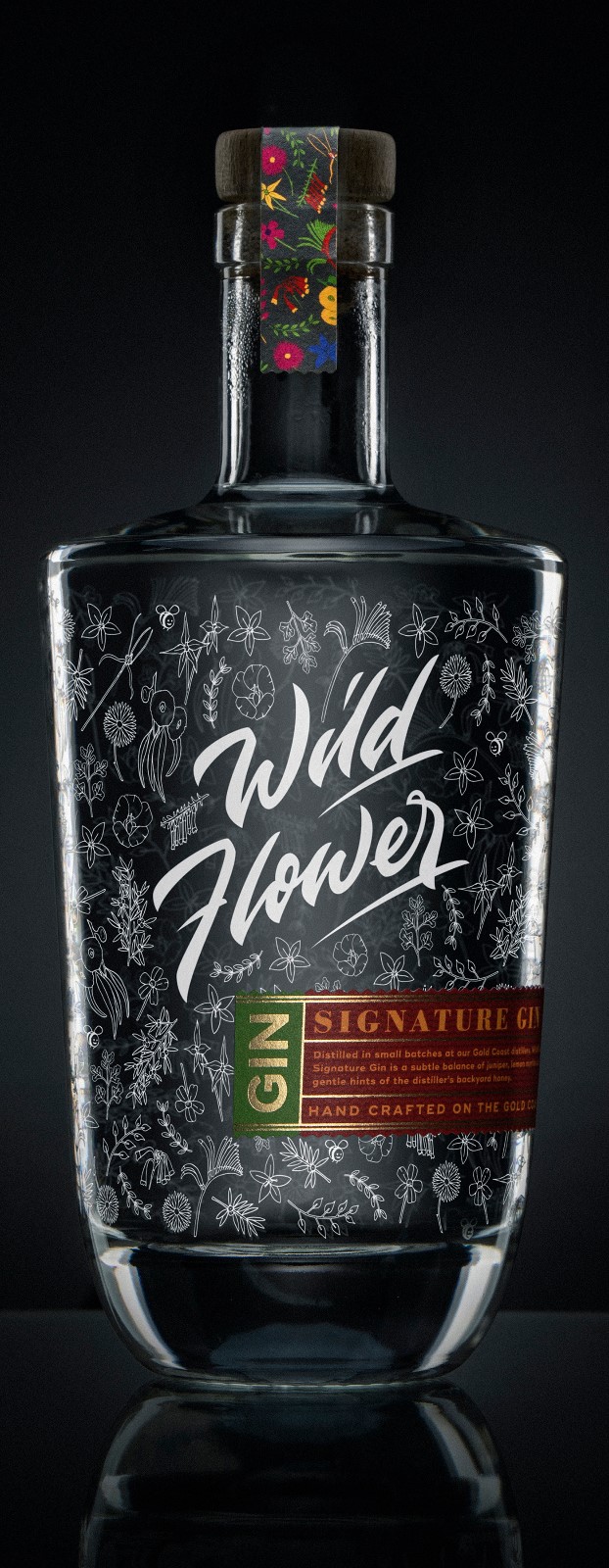 有著清脆通明玻璃瓶的Wild Flower Gin酒包裝設(shè)計(jì)