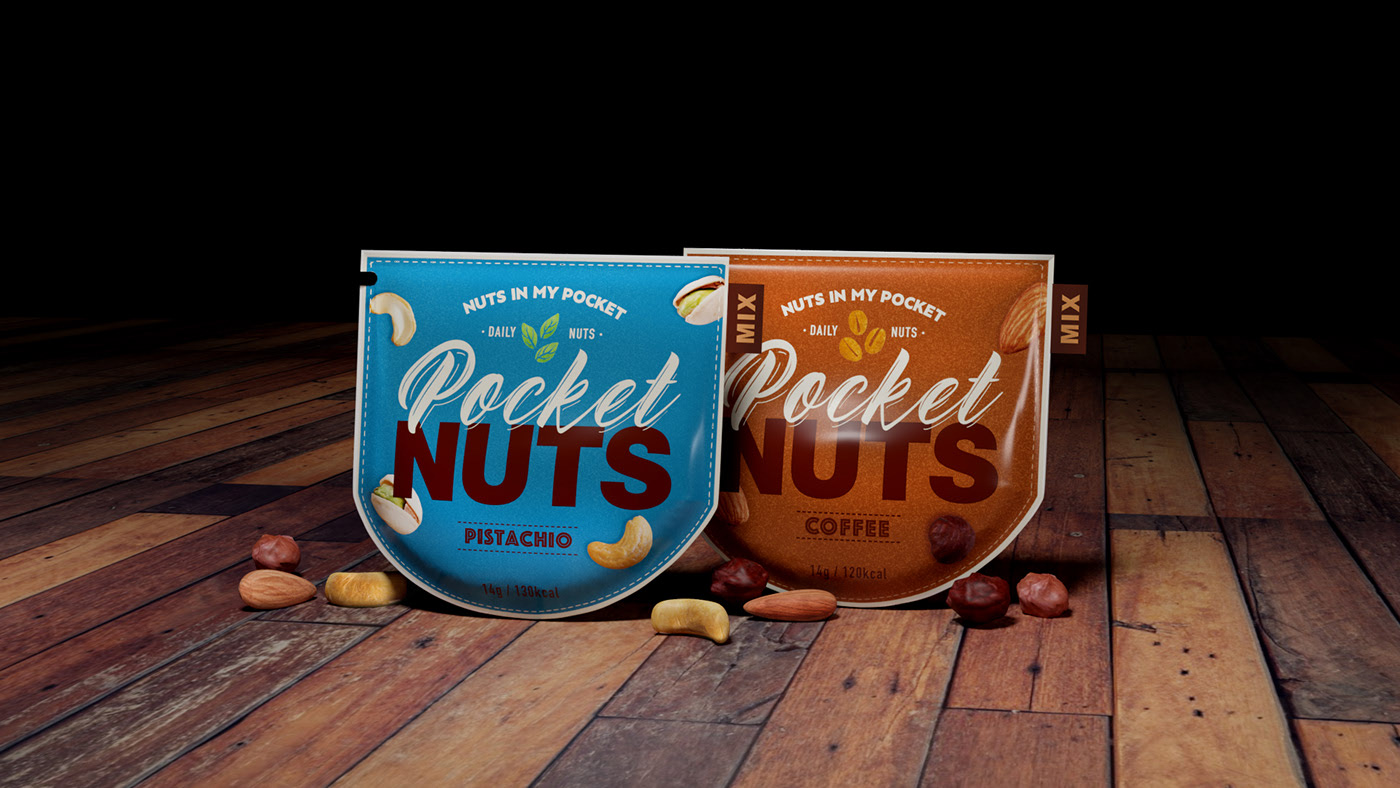 這是為忙碌的現(xiàn)代人設計的軟件包,他們每天都吃堅果。這是堅果,它們可以方便地隨身攜帶和食用牛仔褲口袋的概念。它有兩種口味,咖啡和開心果。