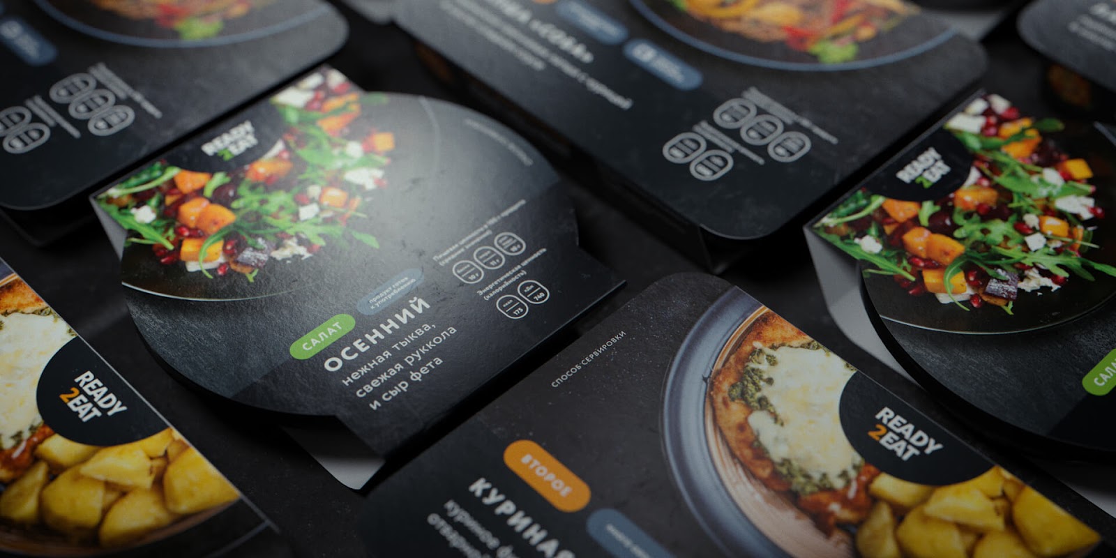 在開發(fā)設(shè)計時,要考慮幾個要點。首先,該生產(chǎn)線適用于大量產(chǎn)品。計劃一段時間后,將包括多達一百種菜肴和飲料。用于此類品牌的企業(yè)標識系統(tǒng)應(yīng)考慮所有擴展產(chǎn)品范圍的選擇。其次,在購買任何產(chǎn)品之前,客戶必須注意其包裝,感到食欲并想嘗試里面的東西。同時,整個READY2EAT系列都以密閉包裝出售-食物不可見。這意味著,設(shè)計應(yīng)引起注意并激發(fā)食欲。