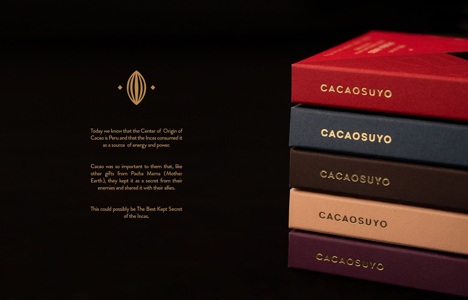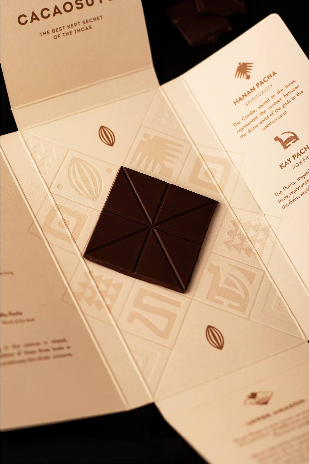 為了給包裝增添質(zhì)感,我們?cè)谡鎵河×藞D標(biāo),為整體體驗(yàn)增添了神秘感。作為解碼品牌的邀請(qǐng)。因此,平坦表面的形狀還可以使您發(fā)現(xiàn)內(nèi)容。最后,通過(guò)將所有這些元素與更清醒和優(yōu)雅的色度組合在一起,我們使Cacaosuyo看起來(lái)像是真正的印加寶藏。另外,我們?cè)O(shè)法提高了對(duì)質(zhì)量的認(rèn)識(shí);現(xiàn)在看起來(lái)確實(shí)像世界上最好的巧克力!
