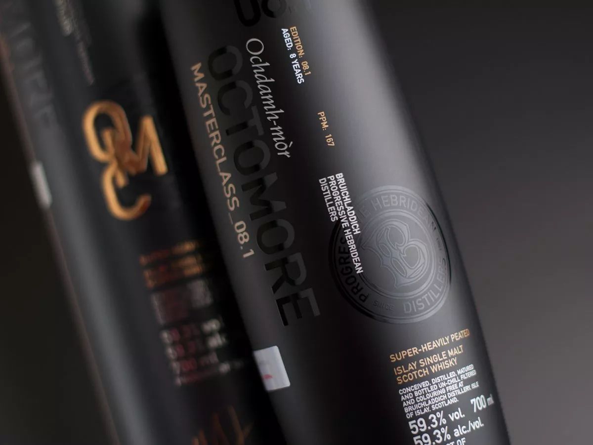 這款伏特加酒的酒盒則是巧妙組合,三合一包裝展示,每一款都有一個獨特的指紋,寓意著每一款都是限量獨特的酒,印刷包材:鐳射銀卡,正面指紋工藝用了起鼓,局部UV,指紋則面用了透印方式,將指紋五顏色六彩呈現(xiàn),在不同光線會有變化,非常有意思。