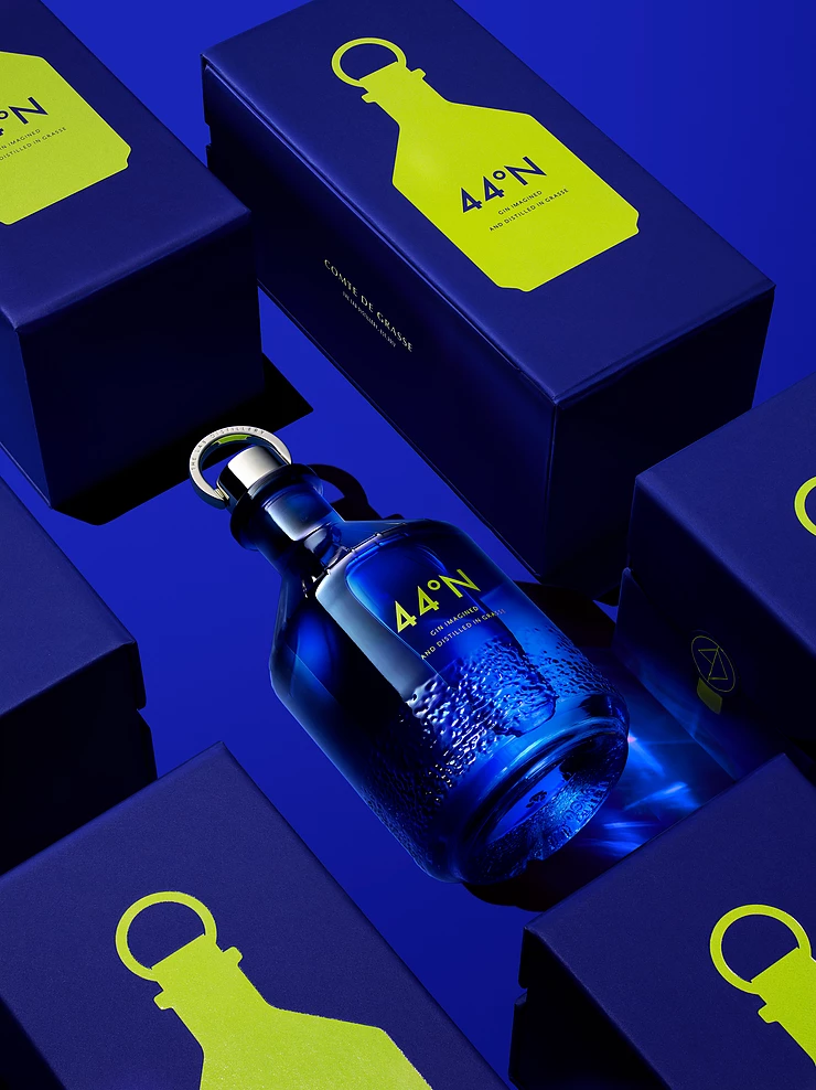 44度N酒則是通過酒瓶型設(shè)計,完美打造獨特符號,看到這個藍(lán),以及這個帶環(huán)的蓋,就能記住這個品牌,極簡主義,就是能讓人快速記住所有信息??此茮]有什么設(shè)計,但上面每一個細(xì)節(jié)都是精心設(shè)計,爆贊