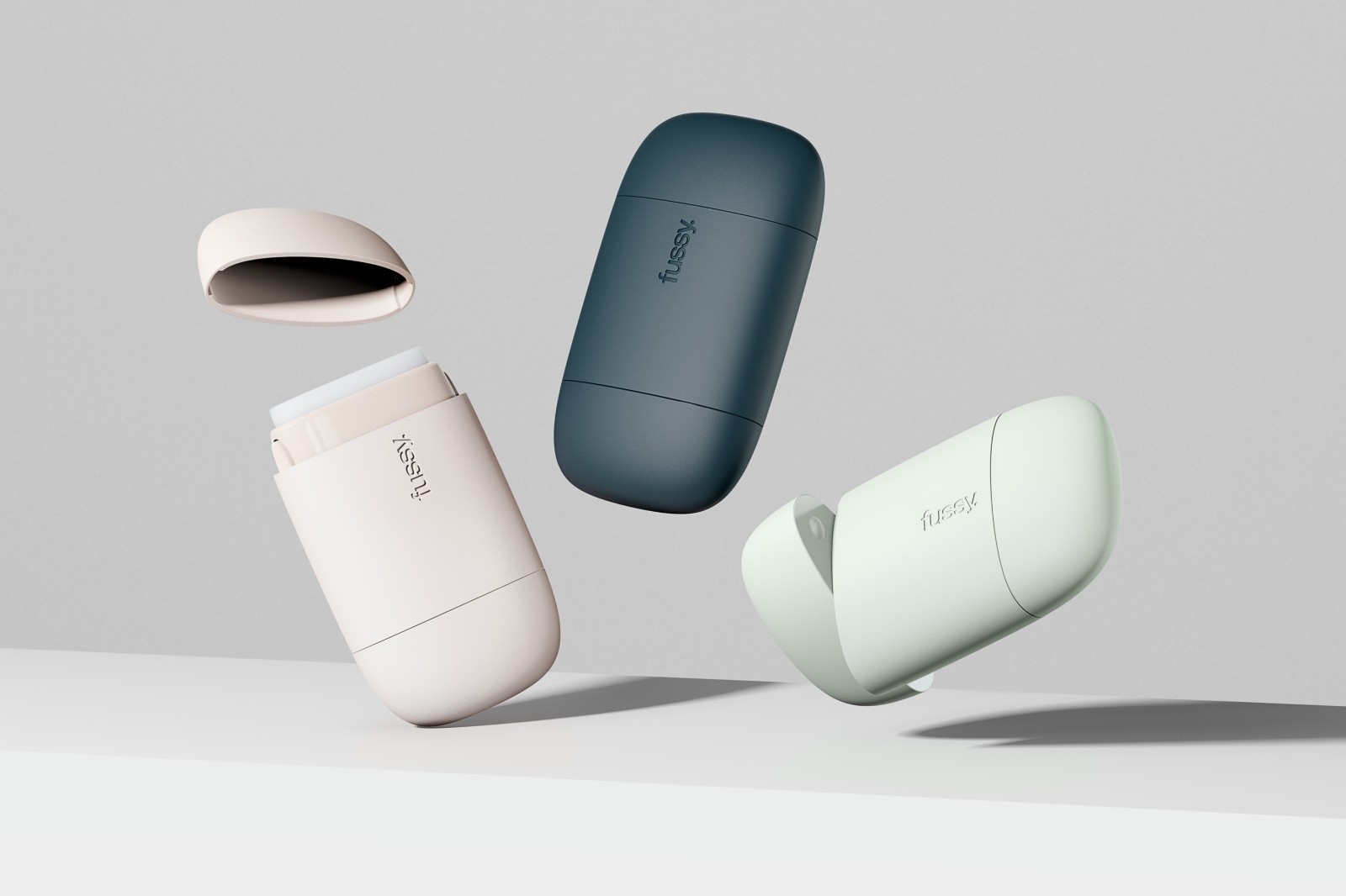 Fussy 的天然除臭棒由倫敦工作室Blond 的James Melia 設(shè)計,由回收塑料制成,并且外殼可無限重復(fù)使用。不要像大多數(shù)除臭劑要求的那樣扔掉整個容器,而是在舊的除臭劑用完后重新插入新的除臭劑塊。