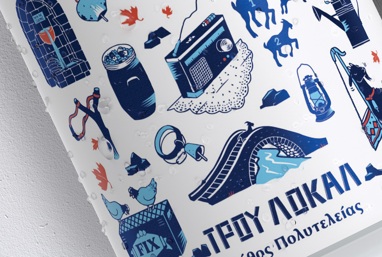 這些插圖因其大膽而引人注目,講述了隱藏地點(diǎn)的小而有趣的故事,這些故事在罐子的每一面都有不同的描繪。FIX Hellas 的標(biāo)志性菱形將其形狀賦予不同的當(dāng)?shù)赜⑿?,并且是我們?chuàng)造的圖像語(yǔ)言的一部分。