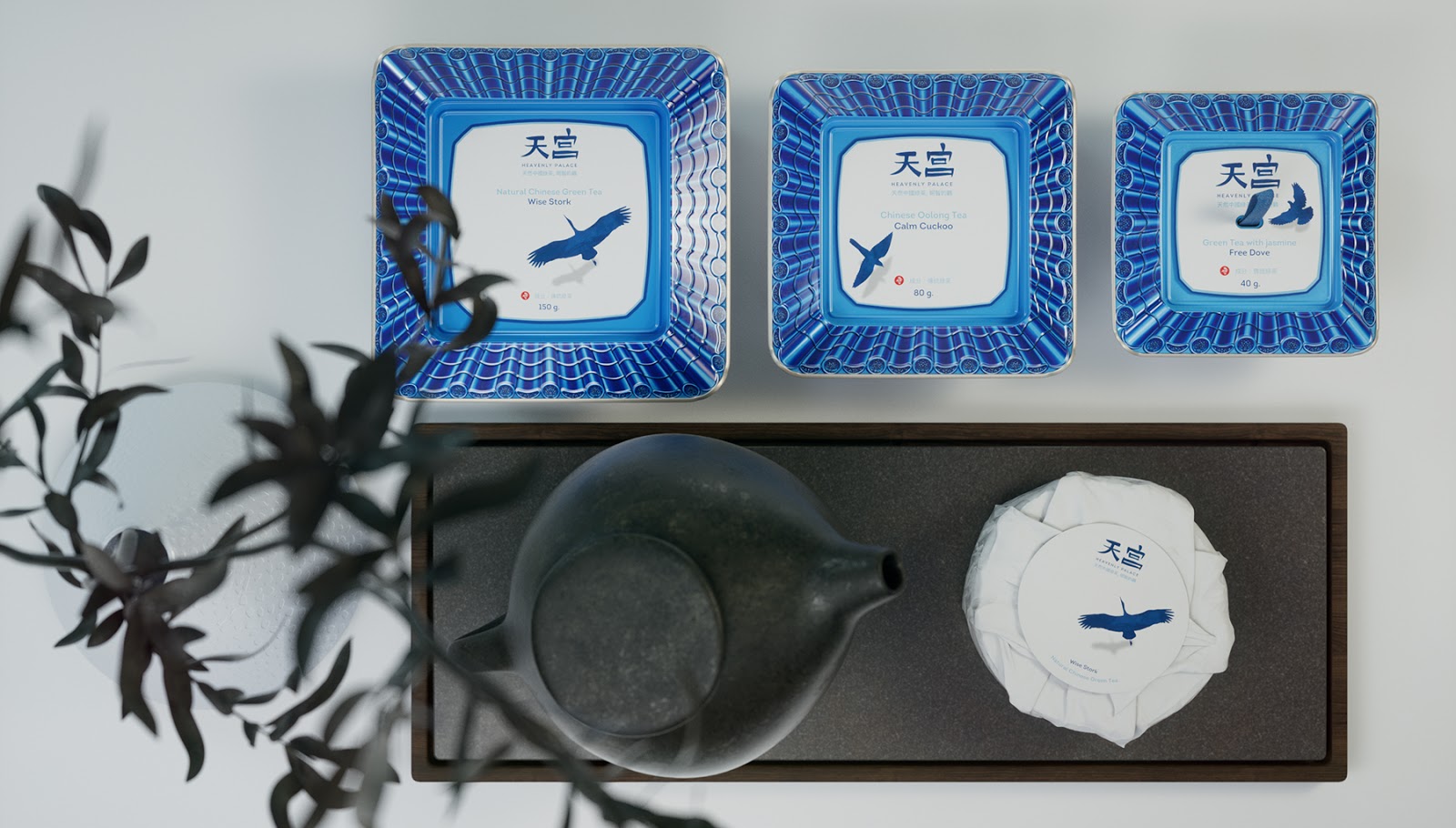 房屋的外墻裝飾有詳細的插圖,靈感來自古代大師的中國古典圖案。茶蒸云中的藝妓、竹瓦、中國燈籠——一切都適合平靜的思想和愉快的喝茶。產(chǎn)品線包括三個品種的中國傳統(tǒng)茶:經(jīng)典綠茶“智鸛”、烏龍茶“平靜杜鵑”和茉莉花綠茶。茶的品種以生活在中國的鳥類形象來比喻——聰明的鸛、平靜的杜鵑和自由的鴿子。設計師的想法是,一只飛過有蓋房子的鳥會投下陰影,房子越高,鳥到屋頂表面的距離越小,投下的陰影越短。